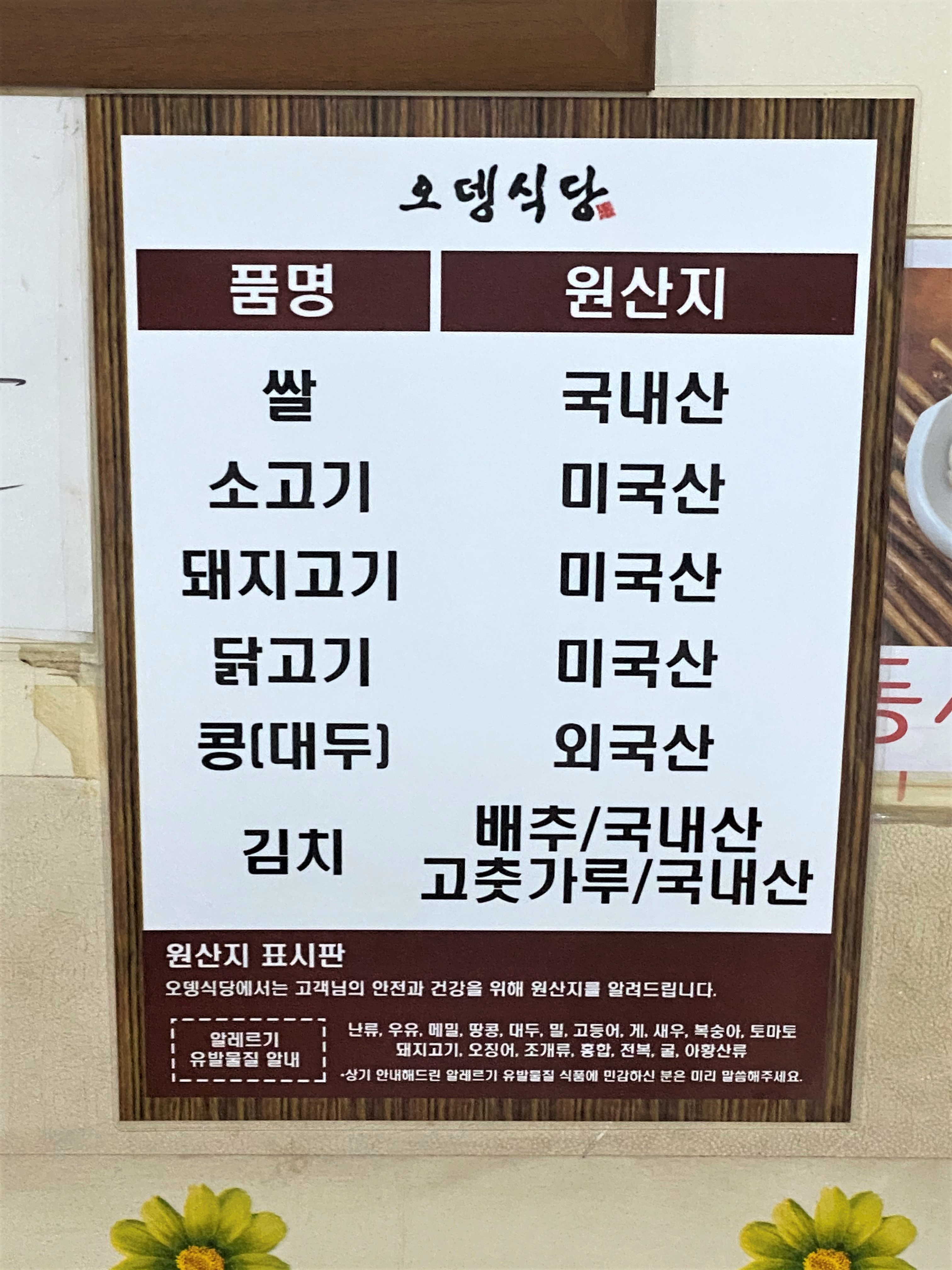 원산지 표기는 필수 이죠~ 당연히 당당하게 표시판으로 표기해놓으셨어요