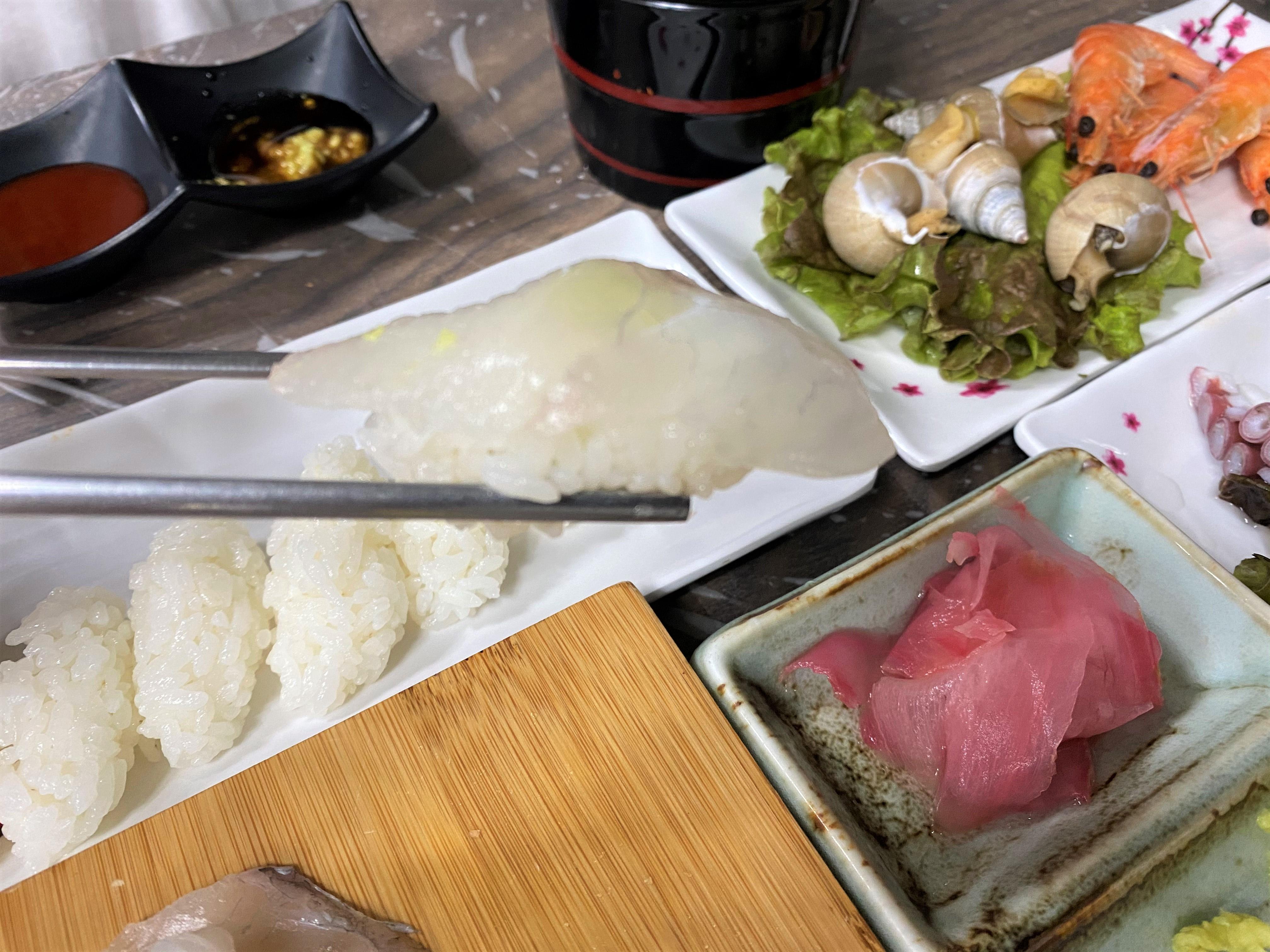초밥은 고추냉이 넣어서 회 얹어서 먹으면 초밥집에서 먹는 맛이 났어요