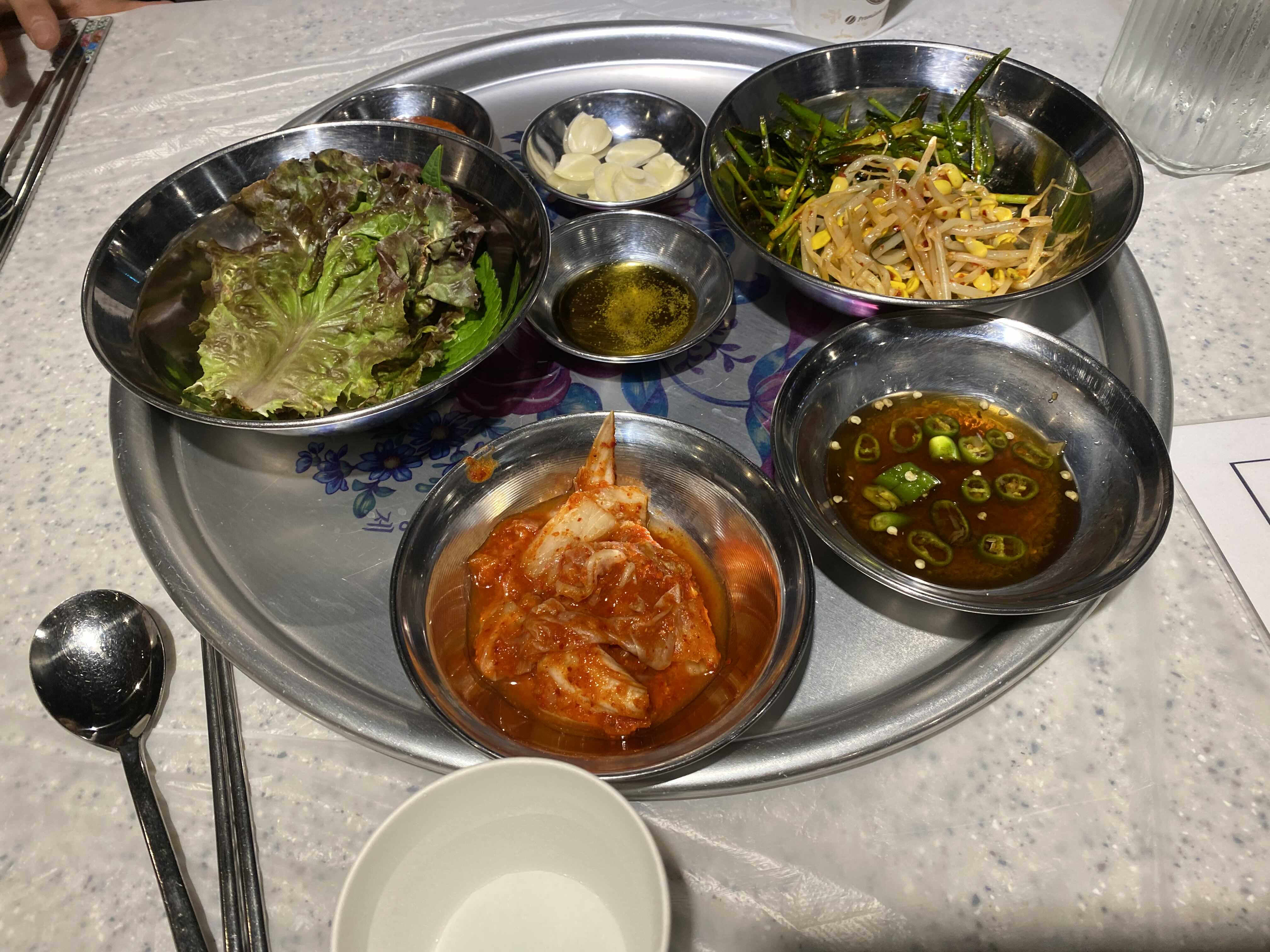 콩나물 부추 상추 김치 마늘 찍어먹는 양념장 이렇게는 셀프바에서 충분히 가져다 드시면 됩니다