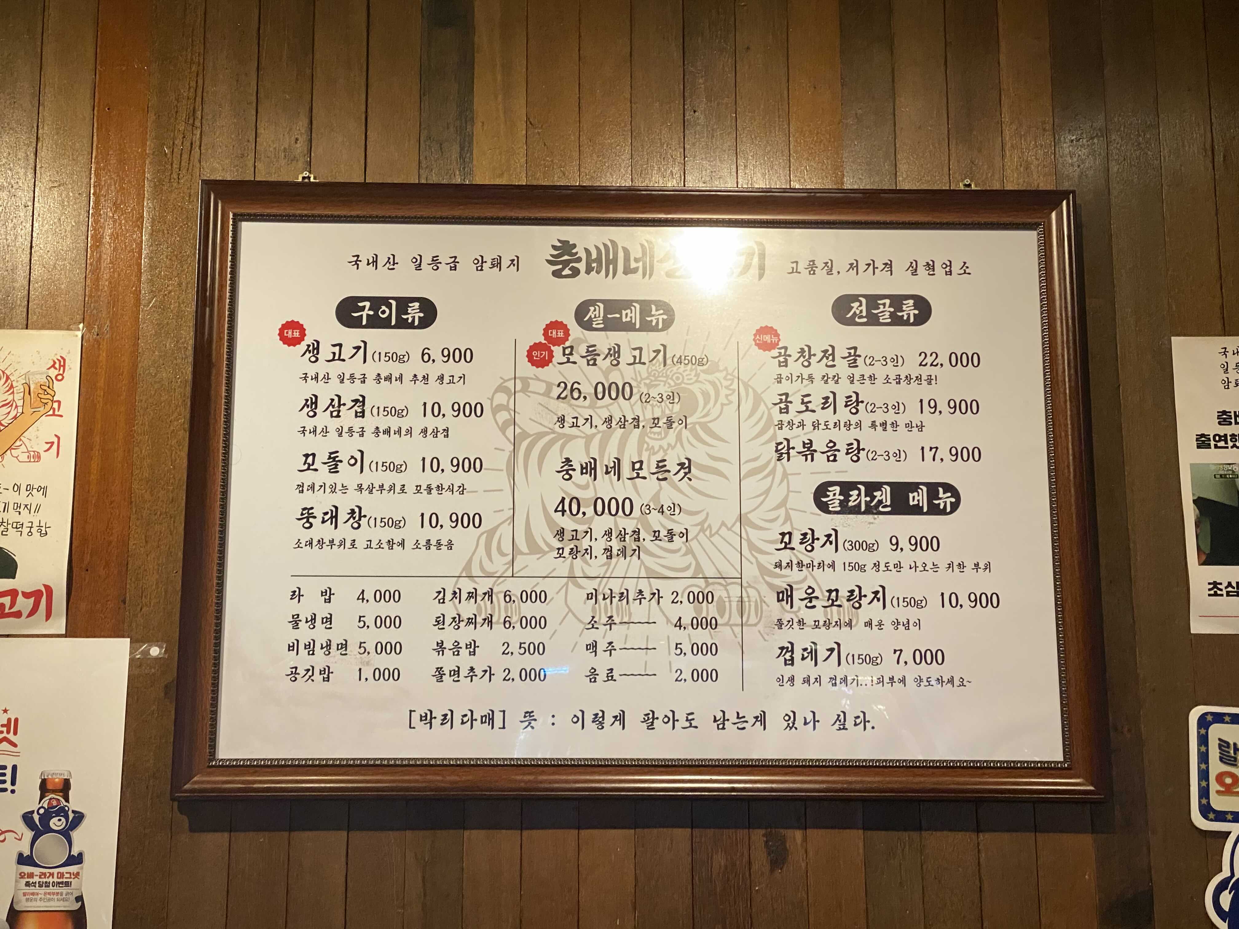 드디어 메뉴가 나왔습니다~ 저희는 생고기랑 껍데기 시켜서 먹었어요!!