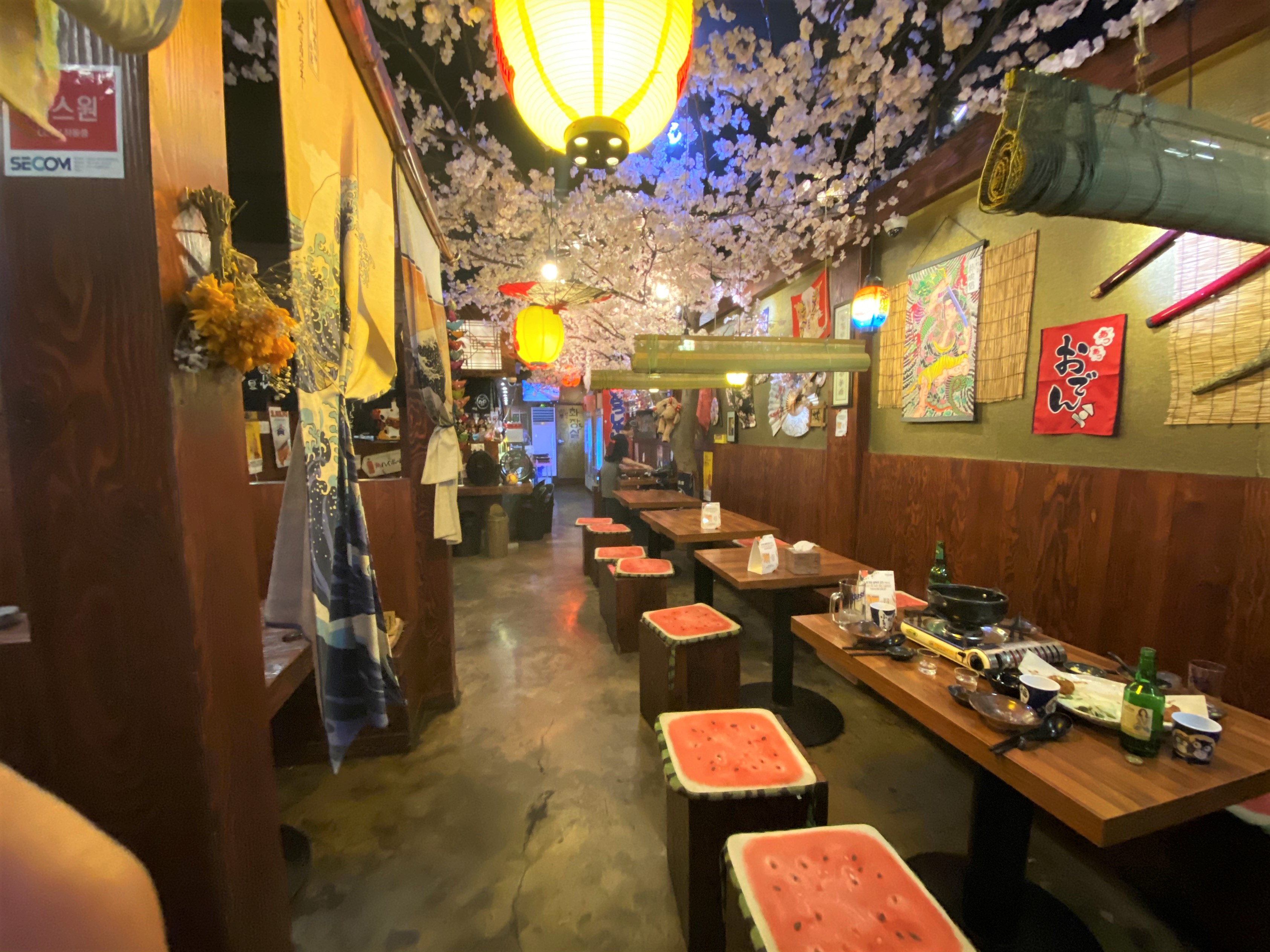 나름 단체석도 마련되어 있었어요~ 좁은 공간 안에 예약석으로 해서 조금 손님이 많이 오실 경우 세팅을 해주시는 듯했습니다. 약간 포장마차 느낌도 살짝 나고요~ㅎㅎ