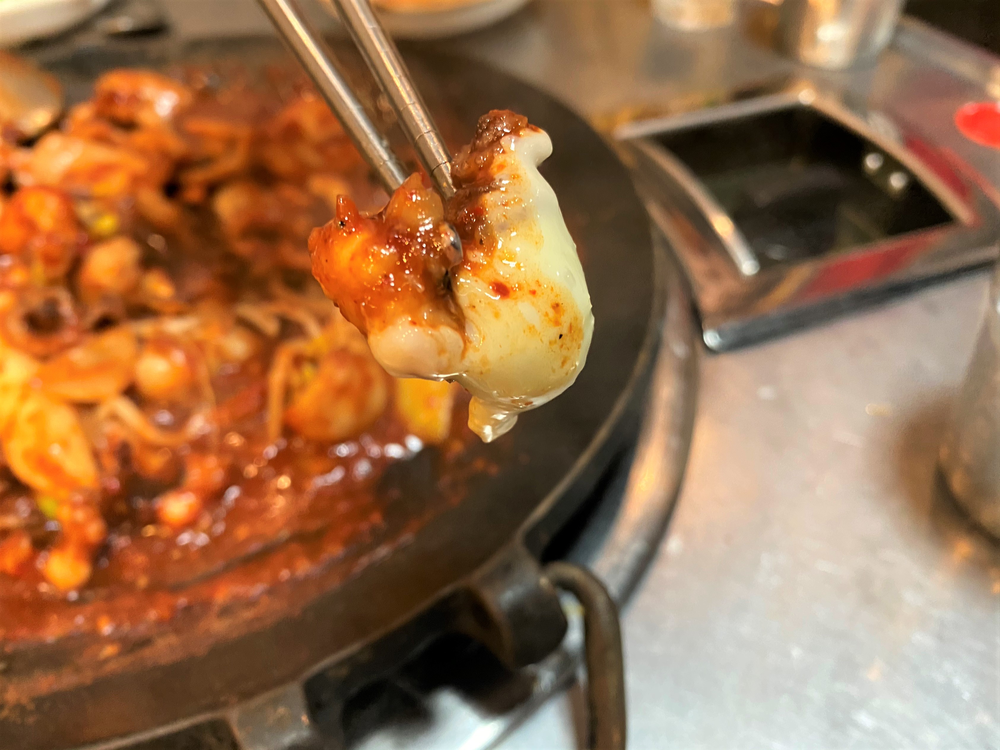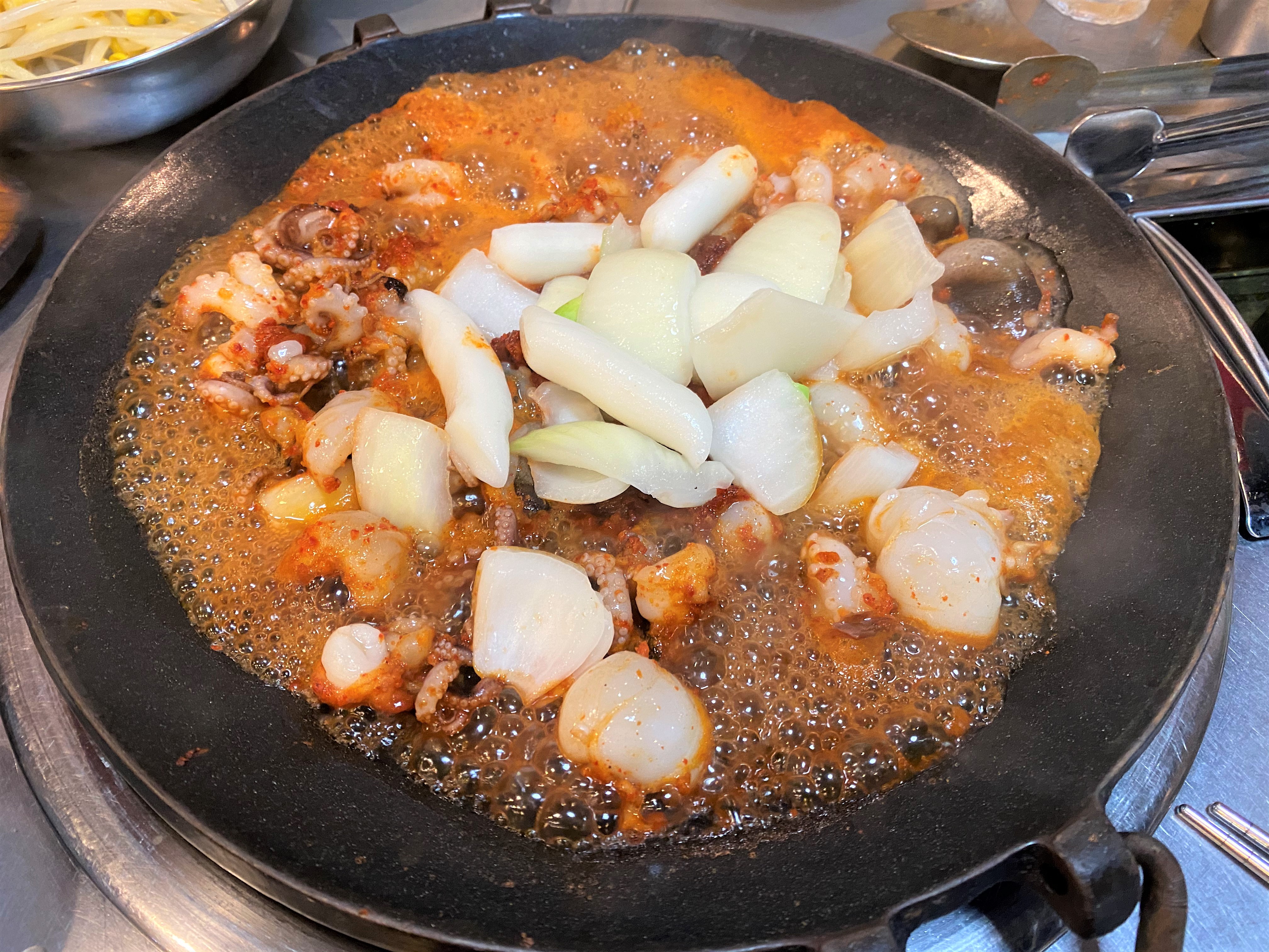 드디어 주꾸미가 나왔습니다~ 저희는 그냥 기본 시켰어요~ 원래 기본을 먹어봐야 다른 것도 맛이 있는지 알 수 있으니까요 딱 봐도 주꾸미 엄청 신선해 보이죠? 실제로도 굉장히 신선했어요~ 질기거나 하지도 않았고요