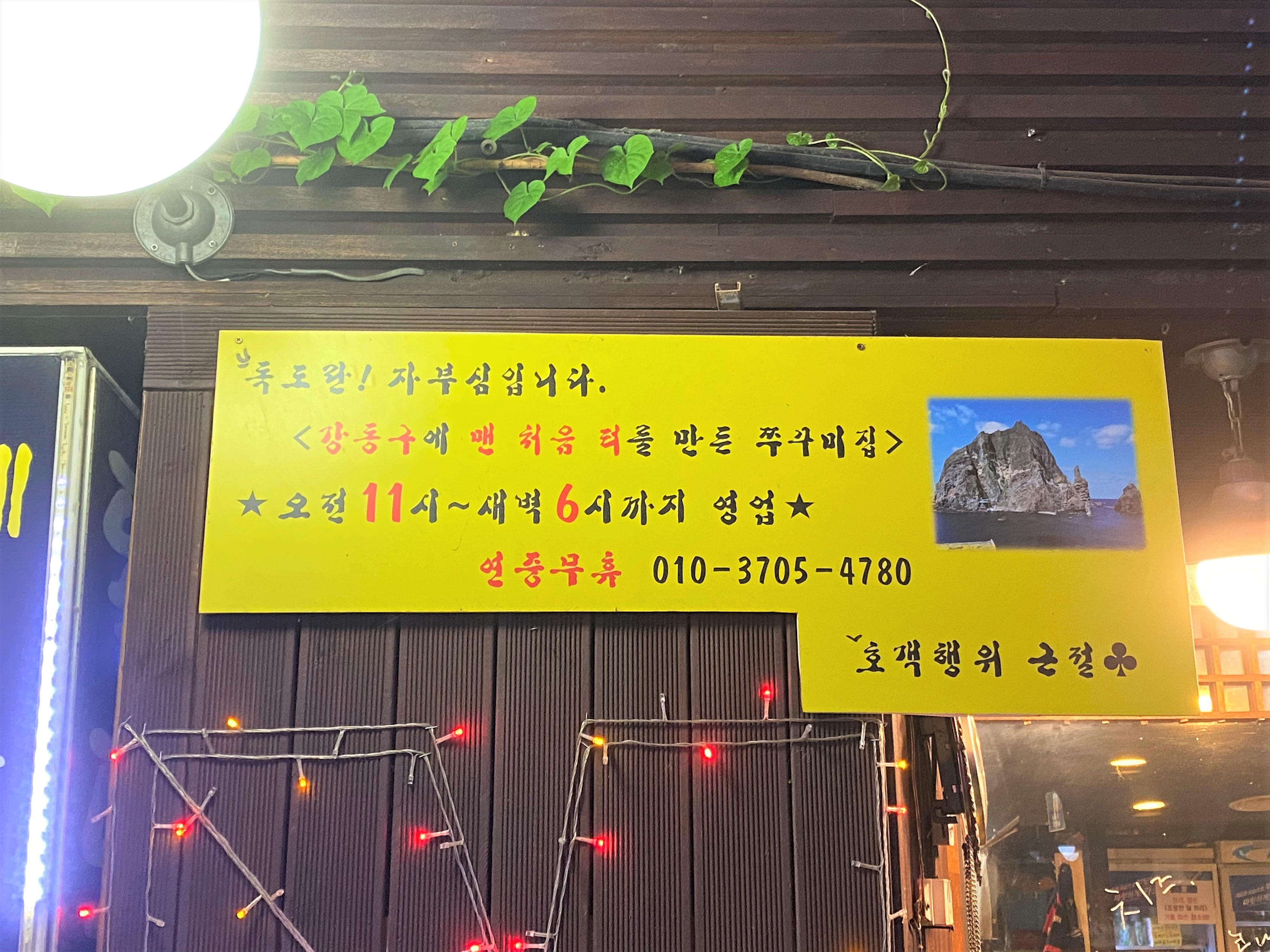 독도 주꾸미 본점 입구 사진이에요~ 딱 봐도 맛집 느낌이 물씬 풍기는 그런 가게였어요~