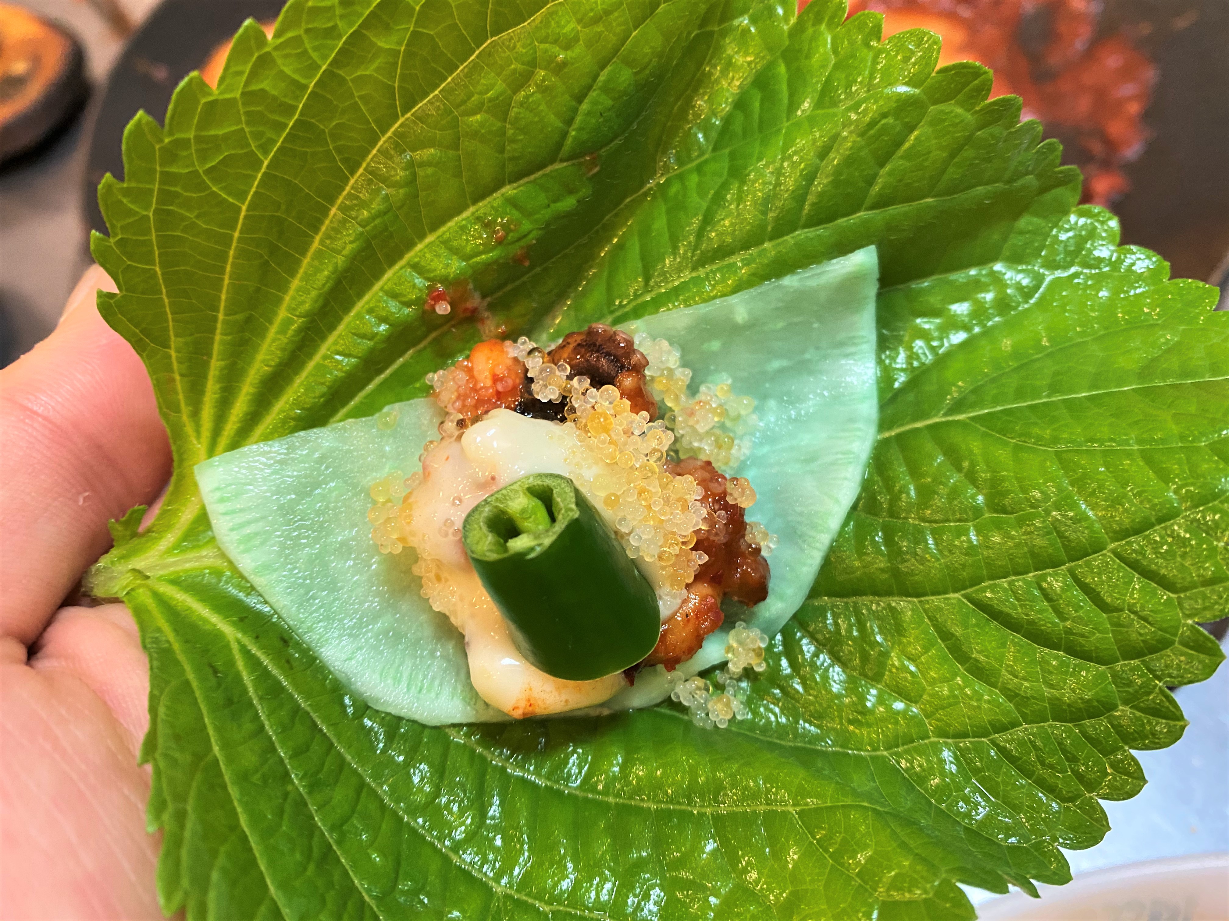 그래서 깻잎에 싸서 드실 때 같이 넣어서 한쌈 하시면 돼요~