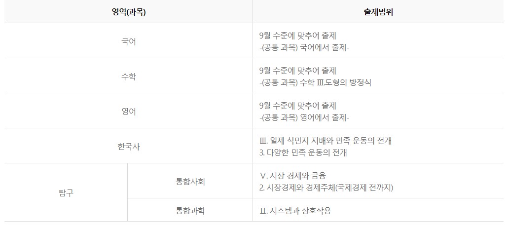 한국사와 탐구 부분에서만 범위를 집어주고 있고요
