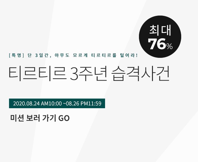 티르티르가 창립 3주년을 맞아서 최대 76% 초특가 할인을 진행한다 합니다.