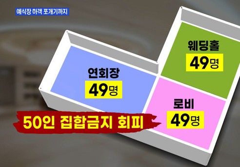내부 홀과 연회장 등등을 이용해 49명씩 진행하기로 하였다고