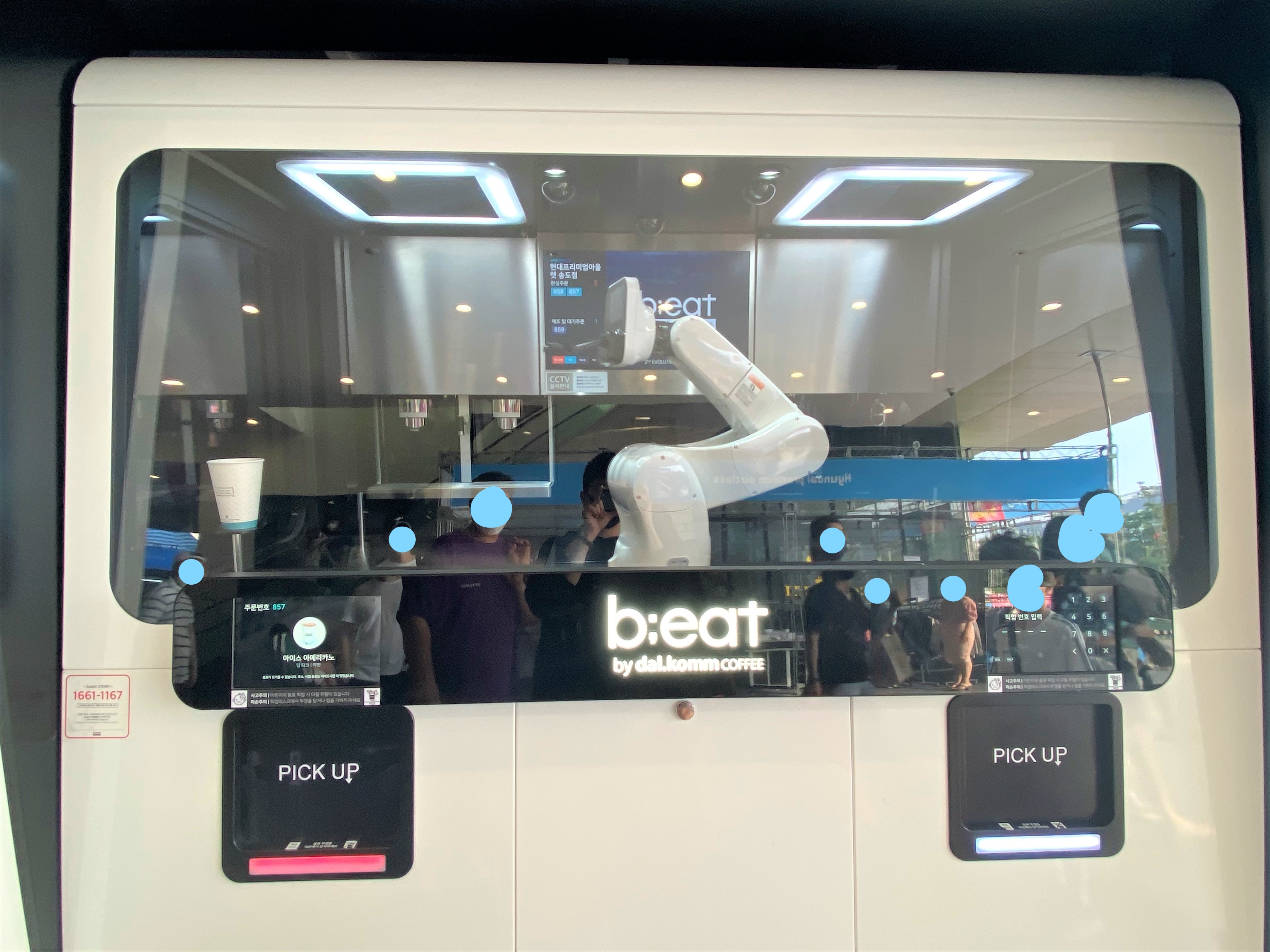 사진에 보이는 기계가 커피가 나오면 집어서 픽업 대에 놔주더라고요~